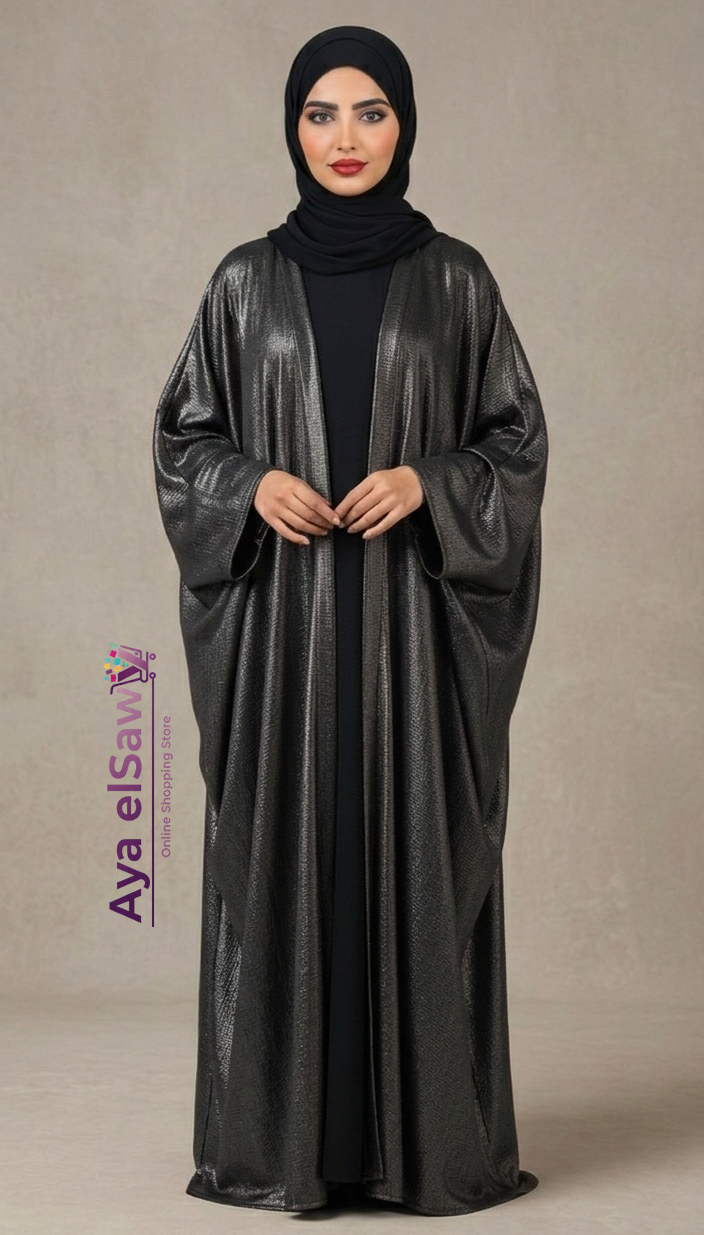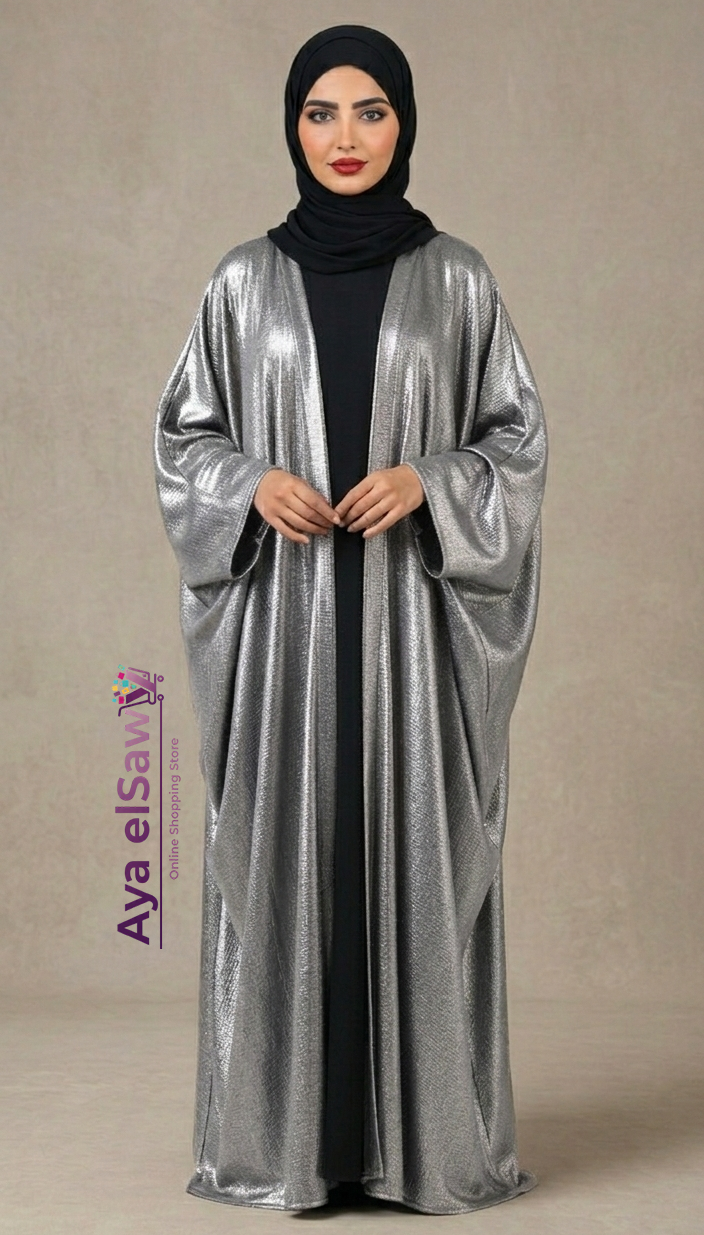 كارديجان سهرة شيك جداً بخامة ميتاليك لامعة بتخطف العين! قصته واسعة (Oversize) وبتنزل بانسابية على الجسم. القطعة دي هتنطق أي طقم بيزيك عندك وهتخليكي نجمة المناسبة.