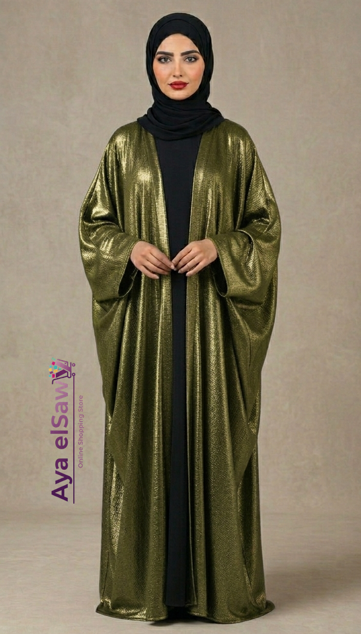 أحلى طريقة لتنسيقه هي إنك تلبسيه فوق فستان أسود بيزيك سادة مع طرحة سودا عشان تدي المساحة كلها للون النحاسي اللامع إنه يخطف العين.